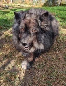 Our very fluffy Amos is an older boy who would love to have a comfy sofa for his last years. He has a very calm temperament and just needs gentle exercise as he is not over active these days. He still enjoys his walk and to be outside to sniff around and explore.